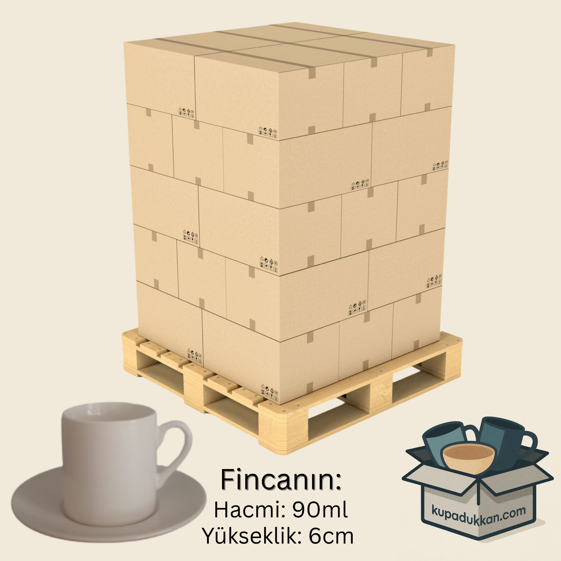 - Fincan Özellikleri: 90 ml hacim, 6 cm yükseklik
